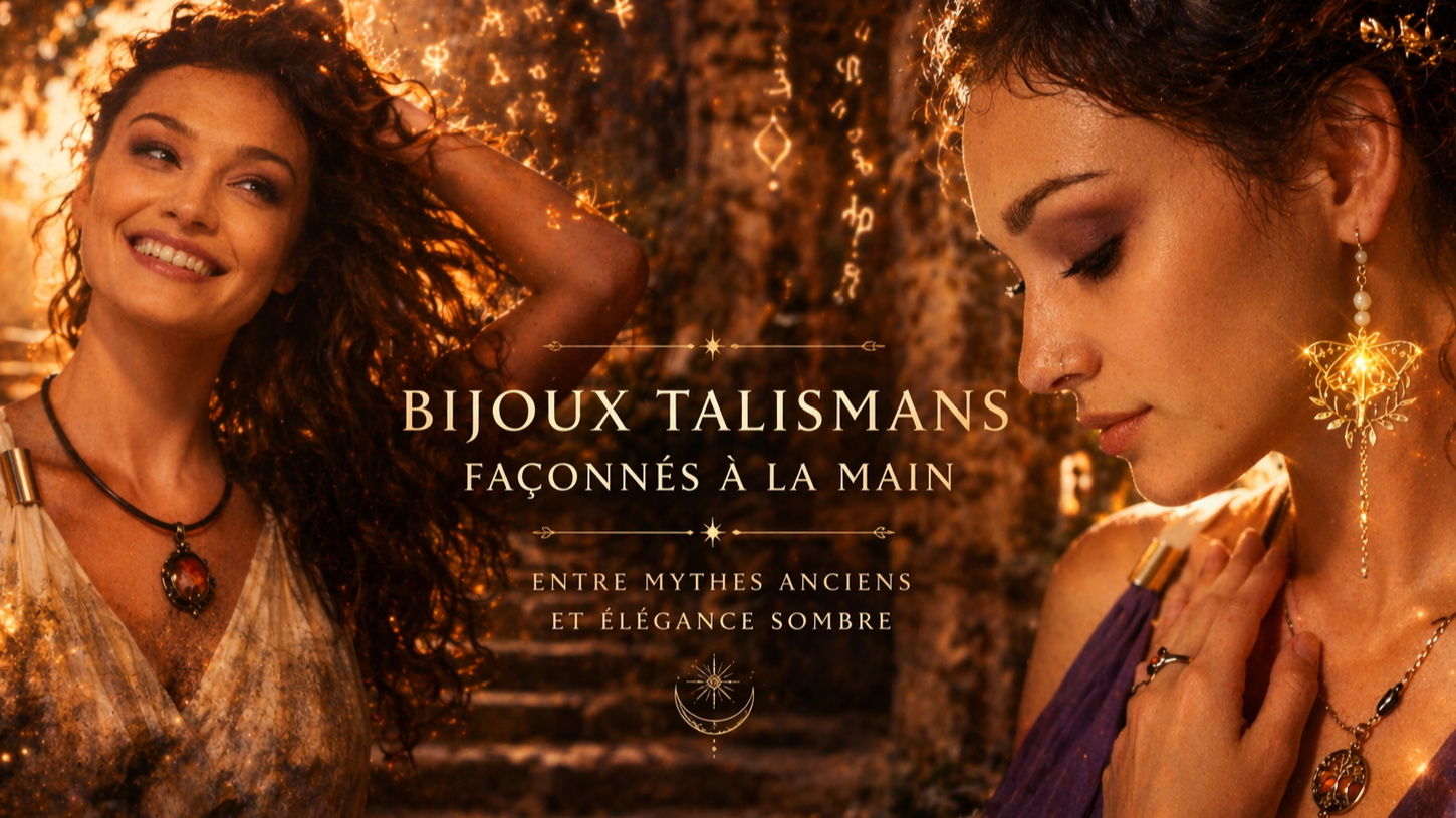 Des bijoux talismans façonnés à la main, où se rencontrent ombre gothique, mécanique steampunk et mythes anciens