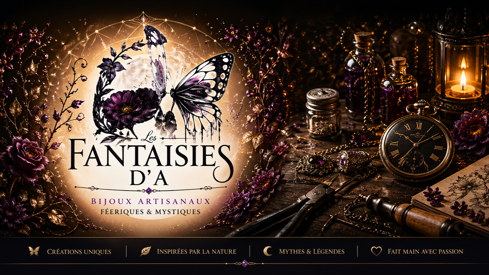 Plongez dans un univers gothique et punk rock mêlant bijoux artisanaux, inspirations dark fantasy et atmosphères sombres et mystiques. Une collection unique entre ombre, caractère et créativité.