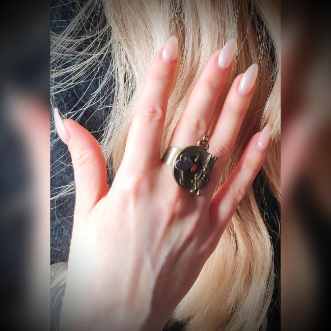 ornée d'un médaillon en forme de montre à gousset émaillée orange aux refets irisés en son milieu (3/2,5cm),