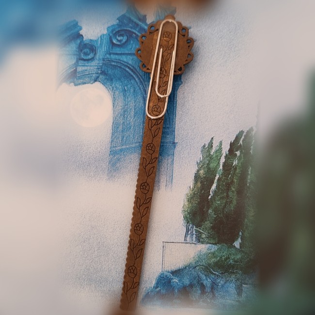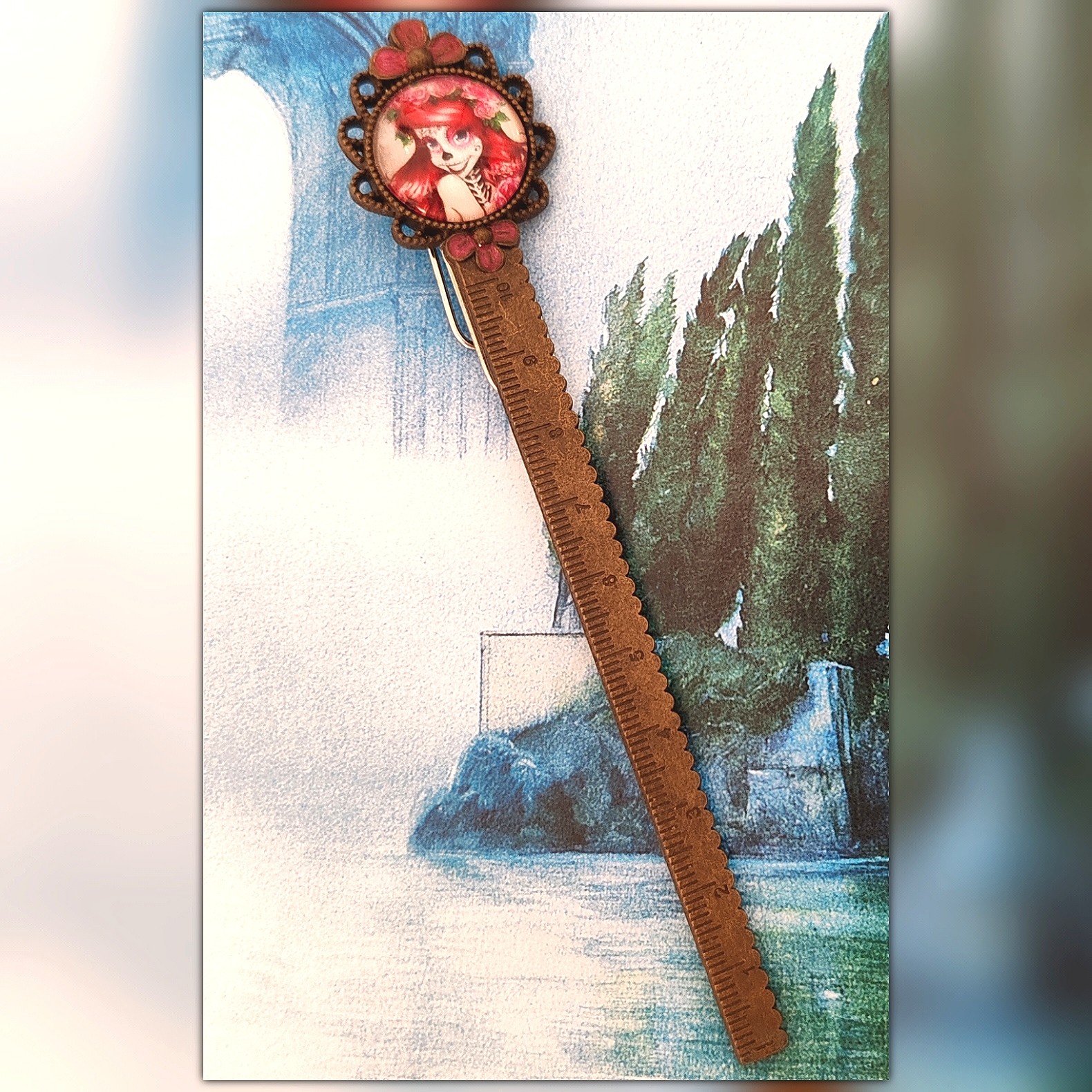 Marque-page gradué en laiton muni d'une attache "trombone" au verso pour le maintien de la page sélectionnée,