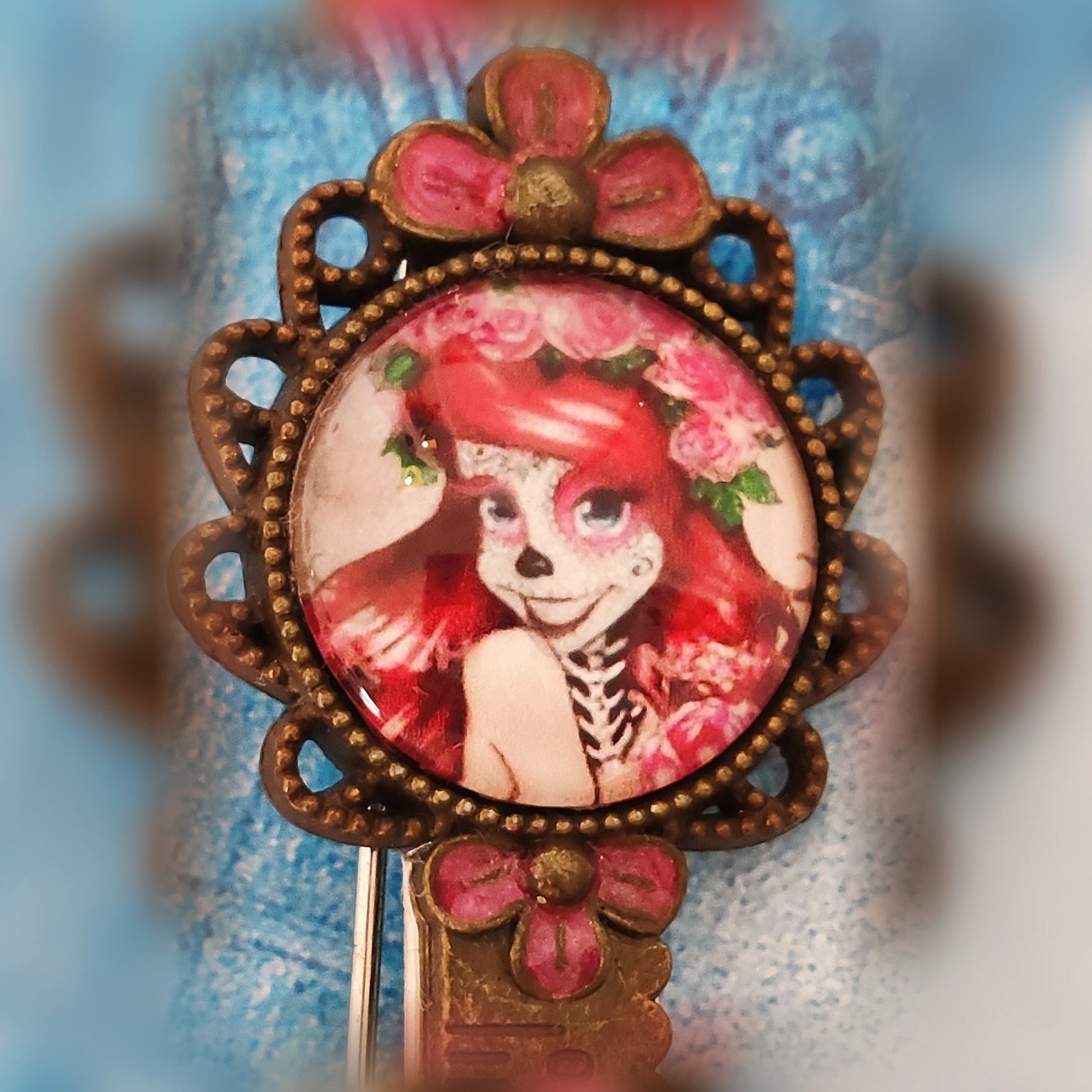 orné d'un médaillon victorien émaillé rouge (diam. 2,5) et embelli d'un cabochon en verre bombé