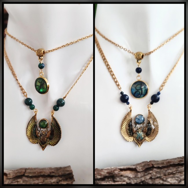 Portant en leur cœur des gemmes précieuses, choisis pour leur beauté et leur vibration, ces colliers sont des fragments de mythes anciens, réveillés et réinventés pour habiller les âmes modernes.