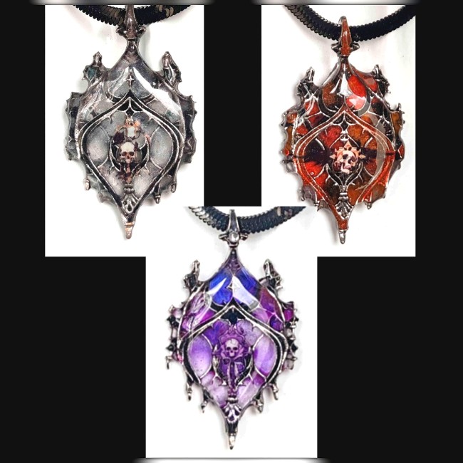 Réalisés en acier inoxydable ou en laiton, mes colliers allient force et élégance. Leur éclat est rehaussé par un émail entièrement façonné de mes mains, dont les nuances profondes et changeantes évoquent les cieux, les abysses, et les mondes oubliés. Chaque couleur, chaque reflet est le fruit d’une alchimie personnelle, soigneusement maîtrisée.